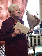 В 100-летний юбилей от имени президента РФ, губернатора Воронежской области, главы Воронежа ее поздравили сотрудники управы Коминтерновского района и управления социальной защиты населения района. Гости пожелали ей здоровья, благополучия, долгих лет жизни и вручили подарки.