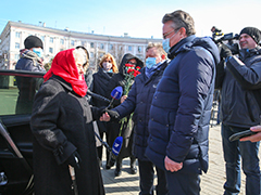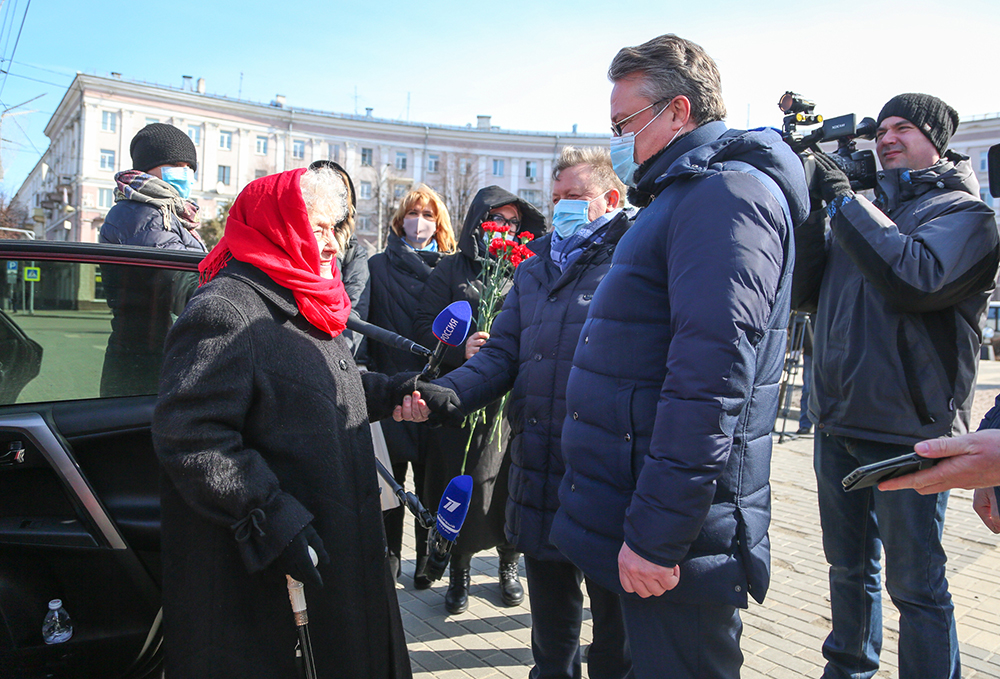 – Спасибо, что нашли время приехать. Дай бог Вам крепкого здоровья, новых достижений и низкий поклон за Ваш подвиг, – пожелал мэр Вадим Кстенин защитнице города.