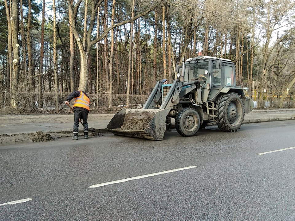 В Краснолесном комбинат благоустройства подметал улицы и завозил срез. С наступлением благоприятной погоды срез будет использован на засыпку ям по улице Г. Лохматикова.