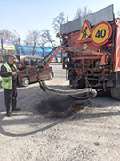 Кроме этого, в районе продолжаются работы по ямочному ремонту дорожного полотна струйно-инъекционным методом с применением машины БЦМ. Осуществляются работы по помывке отбойника под покраску по улице Брусилова, на Чернавской дамбе и ВоГРЭС.
