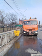 В связи с необходимостью очистки ограждений барьерного типа от грязе-солевых отложений районный комбинат благоустройства приступил к их очистке.