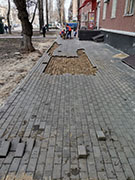 С наступлением благоприятных погодных условий подрядная организация приступила к устранению нарушений тротуарного покрытия, возникших после зимнего периода эксплуатации.Представители управы района выявили порядка 300 кв.м плиточного покрытия подлежащего ремонту (сколы плитки, проседание полотна тротуара, ненормативное состояние люков смотровых колодцев и др.) на нескольких улицах, где работы выполнены в прошлом году. Гарантийный срок на них составляет 4 года.