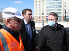 Вадим Кстенин проинспектировал ход реконструкции путепровода на улице Ленина и провёл выездное совещание