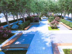 Архитектурной концепцией предусмотрена четкая функциональная организация и зонирование территории с выделением зон тихого и активного отдыха, созерцания, транзитного пешеходного трафика.