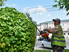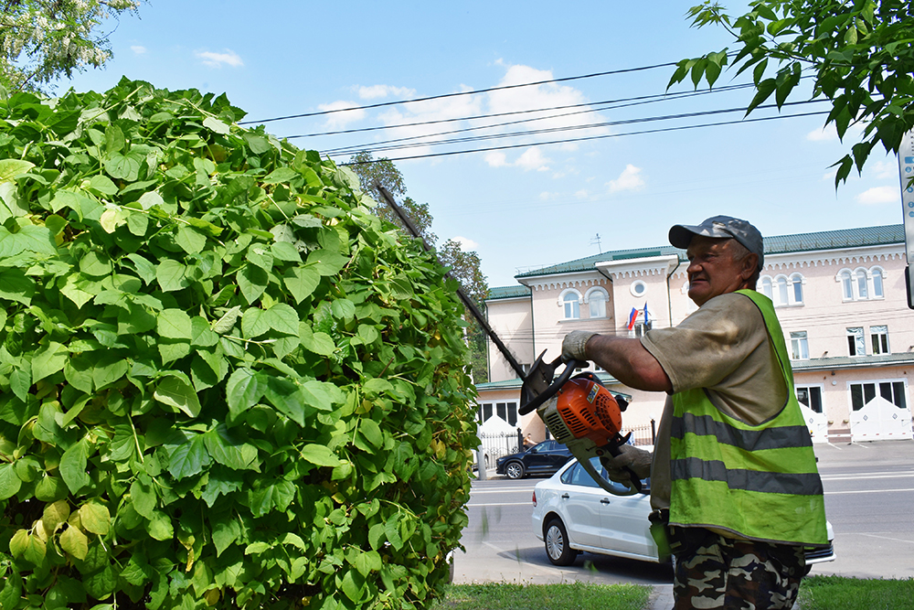 Ежедневно рабочие бригад озеленителей комбината благоустройства осуществляют уход за зелеными насаждениями в районе. Это поливка газонов, покос травы и стрижка кустарника.