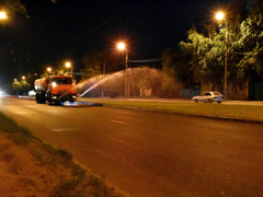 Кроме того, в районе продолжаются работы по ямочному ремонту дорожного полотна. В круглосуточном режиме осуществляется полив газонов, в ночное время – мойка пешеходных переходов.
