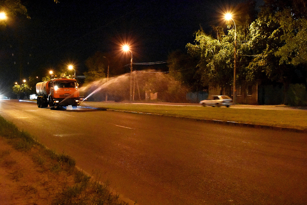 Силами районного комбината благоустройства осуществляется механизированная уборка улично-дорожной сети (подметание и полив) в круглосуточном режиме. Ведется активная работа по уборке бытового мусора с обочин и газонной части вдоль магистральных улиц , прилотковой зоны, тротуаров, производится окраска опор линий электропередачи, лавочек, посадка газона, стрижка кустарника. В связи с сухой и жаркой погодой особое внимание уделено работам по покосу травы и поливу газона.