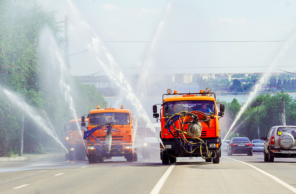 В период пиковых температурных показателей бригады КДМ применяют метод аэрации. Это когда сопло водонапорной системы направлено практически вертикально вверх.