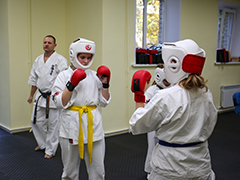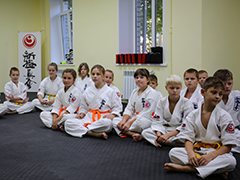 Красная лента торжественно перерезана, и три просторных и светлых зала – два для общей тренировки, один – со снарядами для отработки ударной техники – приняли первых воспитанников. Одновременно здесь могут заниматься две группы по 12 человек каждая.«Сэнсэй-ни рэй» - раздаются детские голоса, когда в помещение входит делегация официальных лиц. Это традиционное приветствие-поклон, которым начинается и заканчивается каждое занятие в знак благодарности за науку, не только часть культуры каратэ - практически все команды звучат на японском языке, но и в целом воспитательной работы. Здесь ребятам прививают лучшие качества, присущие этому виду спорта – взаимоуважение, сосредоточенность, самодисциплина, ответственность и смелость.