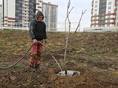 - Сейчас высаживаем первую партию. Каждый саженец с комом земли, это позволит им хорошо прижиться, - отметила руководитель управления экологии Галина Воробьева.Помимо саженцев лиственных деревьев в скором будущем на центральной аллее высадят и взрослую ель, которая в праздники будет играть роль новогодней елки. Она тоже подарена парку питомником ООО «Тисса».