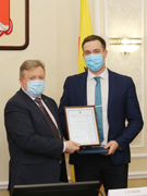 15.12.2021 Открыл торжественную церемонию награждения председатель конкурсной комиссии, заместитель главы администрации – руководитель аппарата Сергей Глазьев, поприветствовав победителей и призеров.