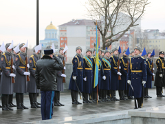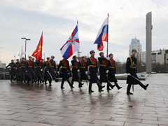 В завершение церемонии военный оркестр исполнил гимн Российской Федерации, а почетный караул прошел торжественным маршем по площади Победы.День защитника Отечества отмечается ежегодно 23 февраля. Эта дата установлена Федеральным законом «О днях воинской славы и памятных датах России», принятом Государственной Думой 13 марта 1995 года. В рамках празднования во всех районах города традиционно проходят тематические мероприятия.
