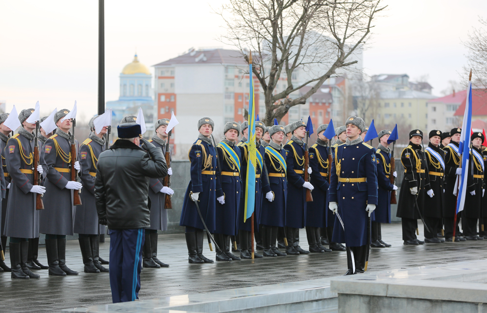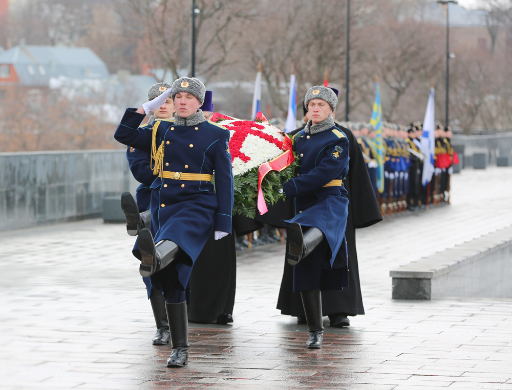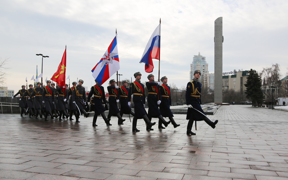 В завершение церемонии военный оркестр исполнил гимн Российской Федерации, а почетный караул прошел торжественным маршем по площади Победы.День защитника Отечества отмечается ежегодно 23 февраля. Эта дата установлена Федеральным законом «О днях воинской славы и памятных датах России», принятом Государственной Думой 13 марта 1995 года. В рамках празднования во всех районах города традиционно проходят тематические мероприятия.