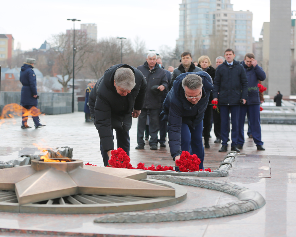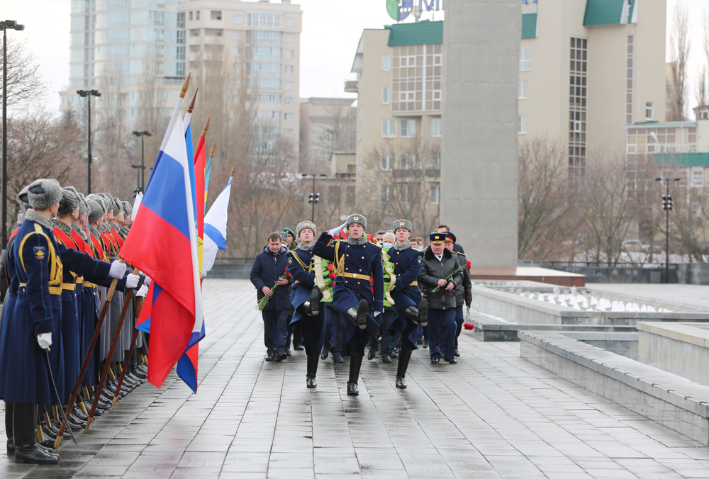 Сегодня, 22 февраля, в преддверии Дня защитника Отечества состоялась торжественная церемония возложения цветов и венков к могиле Неизвестного Солдата на площади Победы.В этот день отдать дань памяти и выразить благодарность и уважение погибшим воинам пришли губернатор Александр Гусев, глава Воронежа Вадим Кстенин, председатель областной Думы Владимир Нетесов, а также городской Думы Владимир Ходырев, представители силовых структур, ветеранских и общественных организаций, духовенства и другие.