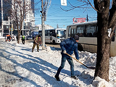 - Мы стараемся оперативно корректировать сменные задания для КБУ, учитывая реальные погодные условия. Стремимся вовремя обработать тротуарную часть, остановочные пункты, подходы к пешеходным переходам. Работники ручной уборки, их в ночь трудилось 9 человек, обеспечивают безопасное удаление снега из приствольного пространства зеленых насаждений, - сказал глава Ленинского района Сергей Ситников.