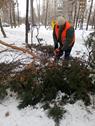 Техника подметала и посыпала тротуары, грейдер уширял проезжие части, работники ручной уборки чистили лестницы, подходы с остановкам и пешеходным переходам. В скверах комбинат чистил лавки и пешеходные дорожки.Особое внимание было уделено распилу и вывозу упавших деревьев и крупных веток.
