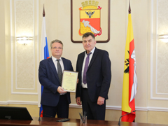 Глава Воронежа Вадим Кстенин за многолетний добросовестный труд наградил Леонида Беляева Почетной грамотой администрации.