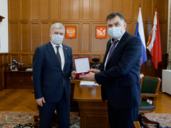 Руководителю управы Железнодорожного района Леониду Беляеву вручили награды губернатор и мэр