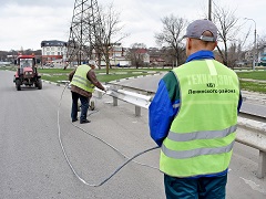 В целях обеспечения безопасности дорожного движения, четкого обозначения перекрестков дорог, мест примыканий к магистралям, путепроводов, «островков безопасности», специалисты МБУ «Комбинат благоустройства Ленинского района» производят окраску бордюрного камня и барьерных ограждений в этих местах.Специалисты комбината занимались приведением в порядок бордюров и ограждений на транспортной развязке ул. Грамши – ул. 20-летия Октября – Петровская набережная. В соответствии с государственным стандартом, окраска производится краской в черный и белый цвет с чередованием в соотношении 1:2.