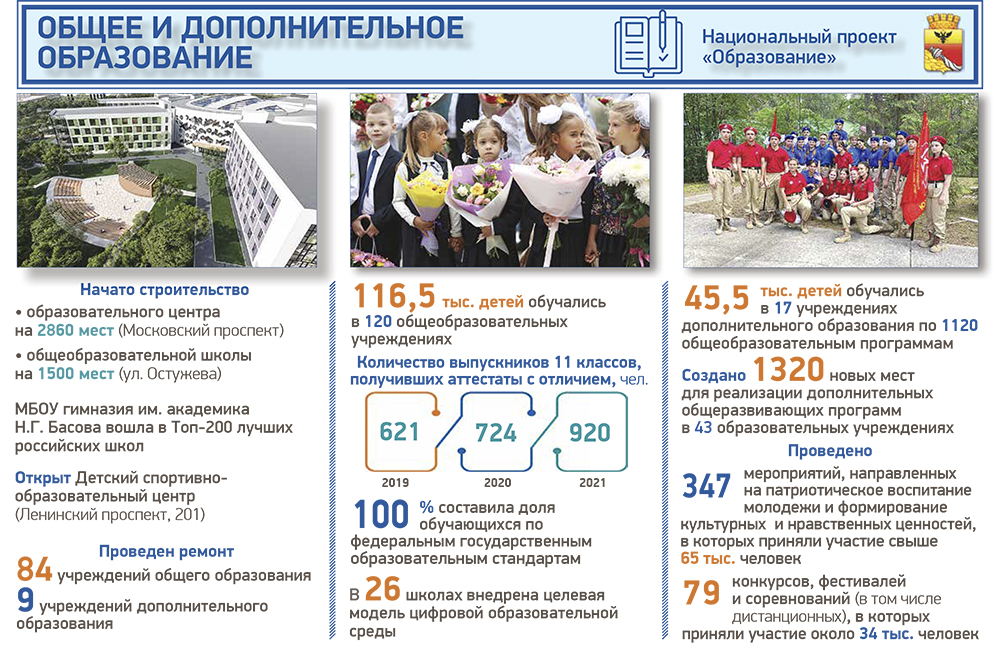 – В рамках регионального проекта «Современная школа» начато строительство «мега-школы» на 2860 мест на Московском проспекте и общеобразовательной школы на 1500 мест по ул. Остужева. Также стартовало возведение пристройки к школе № 77 в мкр. Масловка. В текущем году заключен контракт на строительство школы по улице Домостроителей, – сообщил глава Воронежа.Другое направление работы связано с технологическим обеспечением учебных заведений. Так, в целях повышения качества образовательного процесса в рамках нацпроекта «Образование» продолжилась цифровизация школ: для 26 из них закуплено оборудование, проведен капитальный ремонт помещений, проведено обучение работников.