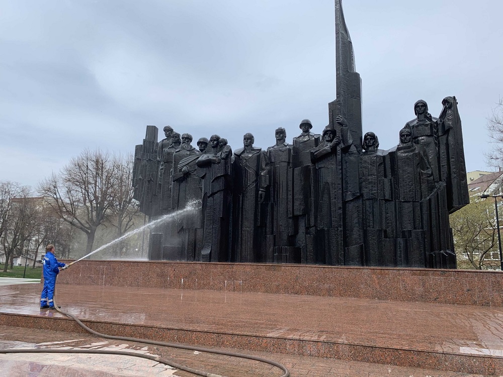 В преддверии празднования Дня Победы горожане будут особенно часто посещать площадь Победы, поэтому важно своевременно привести монумент в надлежащий вид.