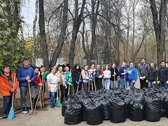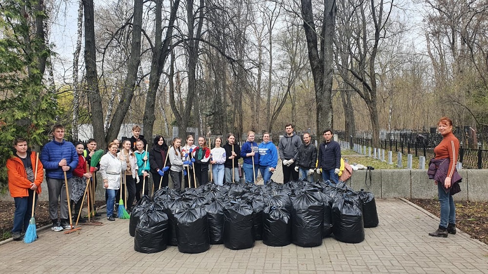 Члены Молодежного совета района, ученики школы № 85 и волонтеры из религиозного объединения «Центр Возрождения» убрали прошлогоднюю листву и отмыли памятники на братских могилах и воинских захоронениях, расположенных на Коминтерновском мемориальном кладбище.