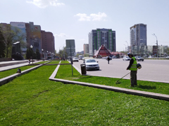 Вместе с тем, на других озелененных территориях, где вследствие благоприятных погодных условий трава уже подросла, производится покос.