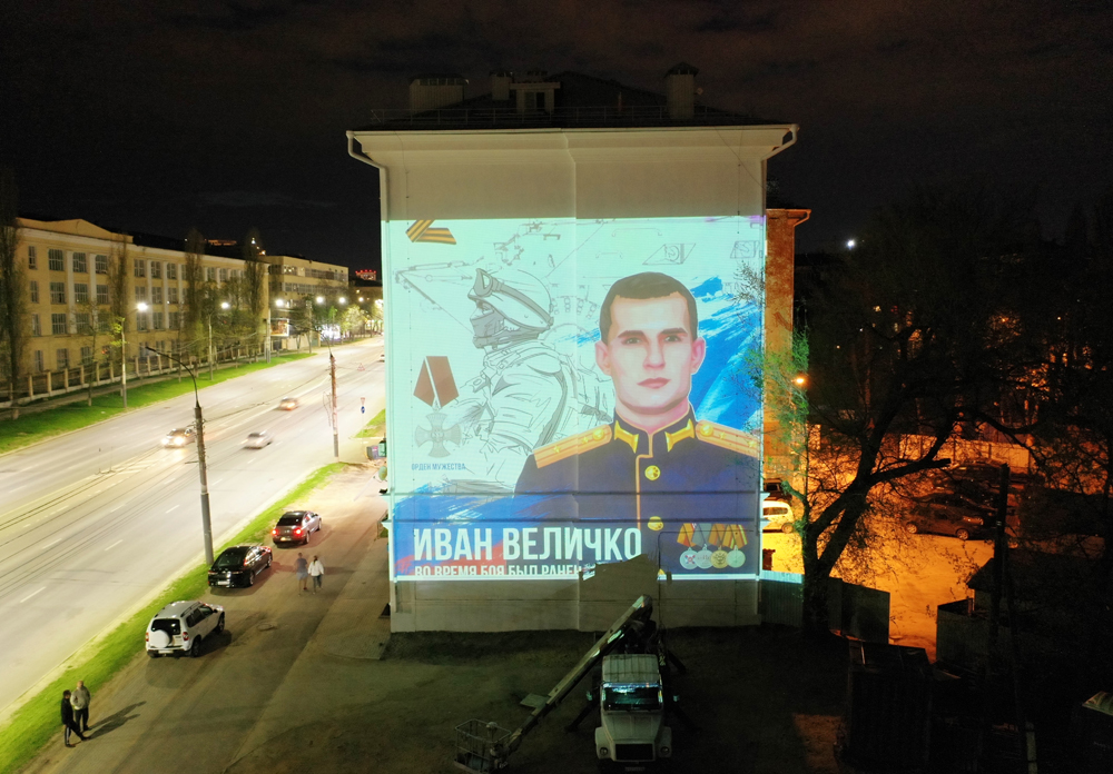 «В ходе ожесточенного боя благодаря профессиональным навыкам и проявленному героизму расчет Ивана уничтожил две боевые бронированные машины и около 20 националистов. Бронетранспортер майора Величко был подбит из гранатомета. Несмотря на полученные контузию и ранение, Иван эвакуировал экипаж из горящего бронетранспортера и вывел всю группу российских военнослужащих из окружения, не допустив потерь среди личного состава», – сообщило ведомство 7 марта.Появление такой работы в Воронеже одобрил губернатор Александр Гусев, по его поручению подготовку к созданию мурала курирует глава города Вадим Кстенин.