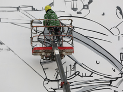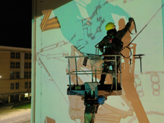 После настройки проекции художники приступили к разметке будущего изображения. Они отмечают, что это очень важный этап – от точности разметки будет зависеть точность нанесения рисунка. Эту работу мастера завершили за ночь.