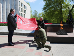 Принимая вместе с Александром Ивченко знамя, мэр Воронежа Вадим Кстенин подчеркнул безусловную значимость происходящих сегодня событий. – Глубоко символично, что копия именно Знамени Победы – флага, поднятого 77 лет назад над Рейхстагом, – побывавшая на местах проведения военной спецоперации, будет развеваться в руках у "Бабушки с красным флагом". Мы принимаем его с честью. 9 мая скульптура будет установлена в Кольцовском сквере, а потом - в Музее-диораме, чтобы каждый воронежец мог ее увидеть, вспомнить поступок Бабушки, ее выбор и ещё раз задуматься. Никто не может топтать нашу историю, нашу память о подвиге защитников Родины. Также я искренне рад, что именно в Воронеже – городе, который не смогли покорить фашистские войска, трудятся такие неравнодушные и талантливые люди, как Александр Ивченко и его товарищ Александр Алферов, способные настолько мастерски создать такую трогательную скульптуру, – сказал мэр.