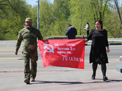 Красное знамя для скульптуры "Бабушки с красным флагом" в Воронеж привез советник главы ДНР Игорь Кимаковский. После многочасового пути он прибыл в знаковое место - к вечному огню у Центра военно-патриотического воспитания "Музей-диорама". Здесь установлена стела "Воронеж - Город воинской славы", здесь - в здании музея - скульптура "Бабушки с красным флагом" будет установлена на постоянной основе после торжественной церемонии открытия, которая пройдет в Воронеже в День Победы. Вместе с советником главы ДНР в Воронеж приехала Ольга Агранович – вдова Сергея Аграновича (позывной «Водяной»), командира разведроты «Спарты», гвардии майора, погибшего при выполнении боевой задачи. Ольгу Михайловну многое связывает с нашим городом. Игорь Кимаковский, передавая флаг главе города и Александру Ивченко, рассказал о чувствах, с которыми он принимал его на Донбассе, о той ответственности, с которой он выполнял эту миссию.