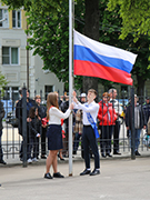 Линейка, на которой собрались ученики 1-х, 9-х и 11-х классов, начинается с традиционного подъема государственного флага под гимн России и приветствия директора школы, заслуженного тренера России, почетного работника общего образования Юрия Белова. Многочисленные слова благодарности сегодня звучали в адрес родителей и педагогов, особое место среди которых занимают первые учителя. Девятиклассники чествовали открывших им путь к знаниям Елену Паневину и Наталью Протопопову, теперь их внимание и заботу ощущают самые маленькие ученики школы – первоклассники. А вот одиннадцатому классу, как отметили сами ребята, повезло больше всех - у них было сразу две замечательные первые учительницы – в первом классе - Наталья Протопопова, а далее проводником по дороге знаний стала их школьный воспитатель Ирина Слободенюк – именно ей и было предоставлено приветственное слово. Она поблагодарила ребят и их родителей за яркую, творческую жизнь в начальной школе.