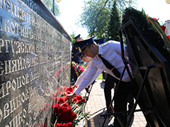 В завершение церемонии на мемориальном комплексе священнослужители Воронежской епархии провели траурную панихиду, военный оркестр исполнил гимн Российской Федерации.