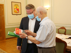 Николай Борисов поблагодарил мэра за поддержку предложенных инициатив и вручил ему авторскую книгу «Командир Т-34. На танке до Победы» с личным автографом.