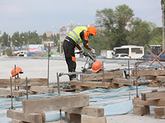 – Сейчас активно ведется устройство гидроизоляции, которое требует тщательной подготовки основания, устройство шкафной стенки на первой опоре, а так же работы по возведению земляного полотна на подходах к путепроводу. После выполнения этих работ приступим к устройству дорожной одежды. Инженерные коммуникации полностью переустроены для обеспечения движения по новому путепроводу. Для обустройства путепровода и подходов закуплены и доставлены на объект опоры освещения, барьерное и перильное ограждения, – рассказала Оксана Ивановна.