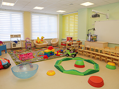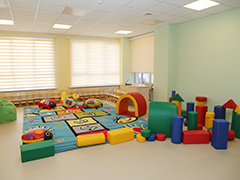 – Садик оснащен современным оборудованием – это логопедические зеркала, интерактивные доски, мультистудия и т.д., в нем будут работать музыкальный и спортивный залы, а также сенсорная комната. Особое внимание уделили безопасности – в самом здании и по его периметру установлены 62 камеры видеонаблюдения. Завершено и благоустройство прилегающей территории, там появились беседки, игровые и спортивные площадки, озеленение, – отметил Вадим Кстенин.