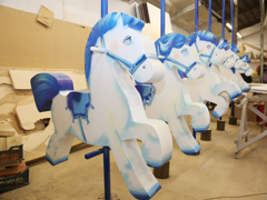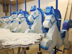 Одним из новшеств этого года станет появление на площади Ленина горки высотой более 5 метров. Этот вопрос детально обсуждался специалистами, основываясь на наблюдениях и опыте прошлых лет, было принято решение о создании дополнительных активностей для детей. Горка – самый масштабный элемент. Работать аттракцион будет в любую погоду, благодаря тому, что два ската шириной по полтора метра изготовлены из скользящего материала. Воронежцы смогут кататься не только в светлое время суток, но и вечером, так как рядом будет установлено более 30 светильников-шаров. – Проводится огромная инженерная работа – после получения концепции, дорабатываем все проекты конструкций, производим тщательные расчеты параметров и характеристик, а также стараемся вложить душу в каждую композицию. Сейчас более 100 человек заняты подготовкой новогодних конструкций. Например, фигурки лошадок, которые будут располагаться на детской карусели, выпилены на станке по однотипному эскизу, но расписаны вручную воронежскими мастерами-художниками. Цель, которую мы ставим перед собой – реализовать не только высокотехнологический проект, но и вложить в него огромный интеллектуальный ресурс воронежских специалистов и, конечно же, доставить положительные эмоции детям и взрослым, которые придут на площадь, – отметил представитель фирмы-подрядчика Борис Чубур.