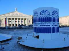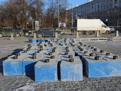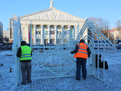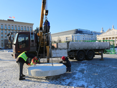 На главной площади города начаты работы по монтажу новогодних конструкций. Четыре дня назад туда начали доставлять элементы, которые необходимы для дальнейшей установки новогодних конструкций. Это 350 тумб-подставок, бетонные конусообразные основания, деревянные пьедесталы и другое оборудование. По словам представителя фирмы-подрядчика Бориса Чубура, сейчас, как на настоящей строительной площадке, идёт подготовка фундамента будущего маленького новогоднего парка, который появится в самом центре города.