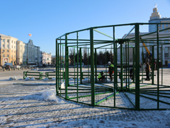 Кроме того, рабочие приступили к монтажу самой крупной сборной конструкции, которая в этом году появится на площади Ленина. Аттракцион «Русская горка» начнет свою работу с момента открытия площади Ленина, после 25 декабря. Посетители смогут на своих тюбингах и ледянках прокатиться с 22-метрового спуска без угрозы для жизни. Подняться туда можно по антискользящим лестницам, расположенным с разных сторон конструкции. Согласно проекту на изготовление, установку и дальнейший демонтаж горки направлено более 3 миллионов рублей.