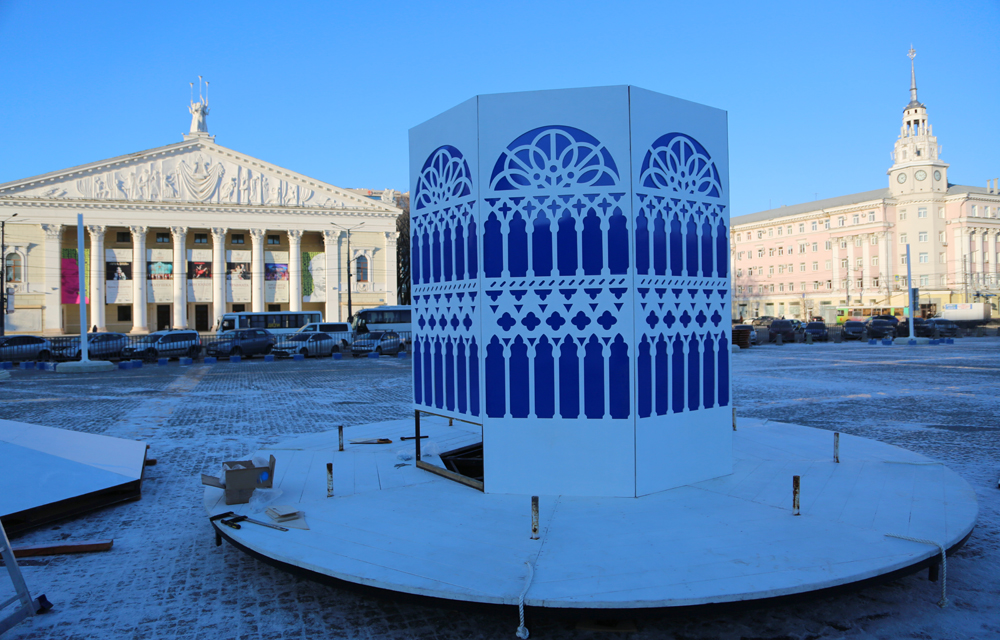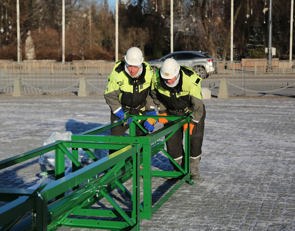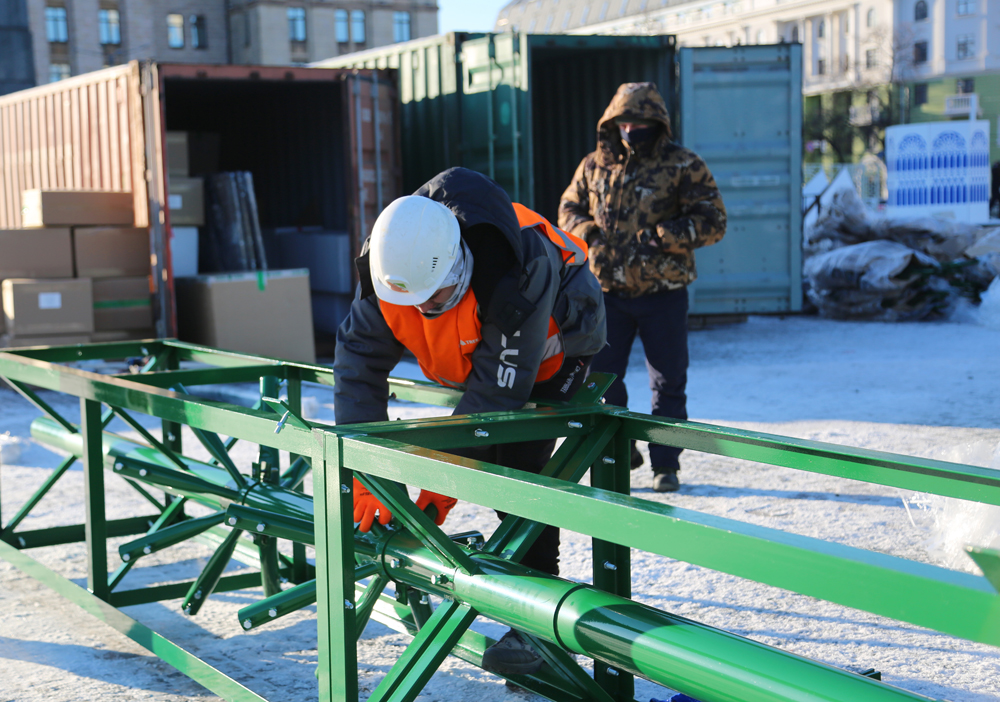 Кроме того, рабочие приступили к монтажу самой крупной сборной конструкции, которая в этом году появится на площади Ленина. Аттракцион «Русская горка» начнет свою работу с момента открытия площади Ленина, после 25 декабря. Посетители смогут на своих тюбингах и ледянках прокатиться с 22-метрового спуска без угрозы для жизни. Подняться туда можно по антискользящим лестницам, расположенным с разных сторон конструкции. Согласно проекту на изготовление, установку и дальнейший демонтаж горки направлено более 3 миллионов рублей.