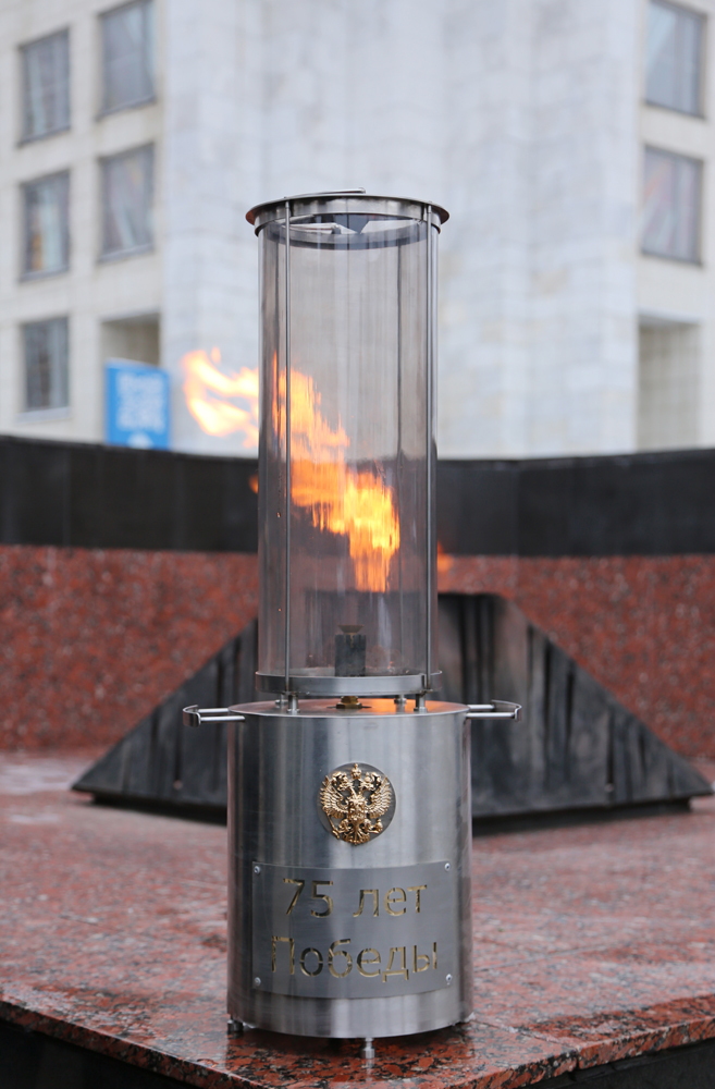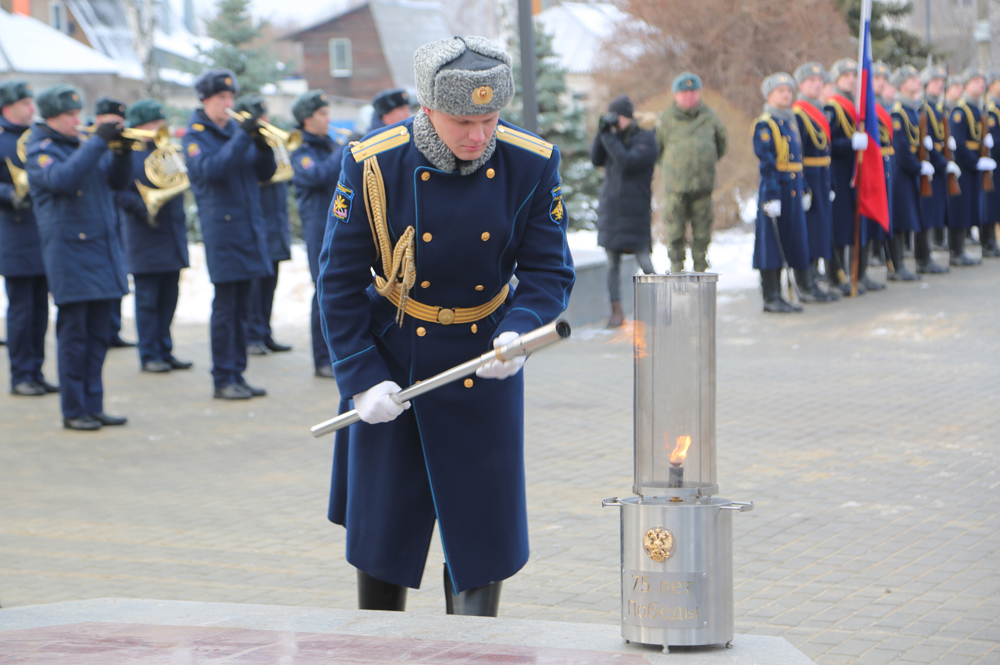После приведения в порядок воинского захоронения, «пламя памяти» там загорелось с новой силой. С утра 16 декабря сюда перевезли частицу Вечного Огня с братской могилы №6, которая располагается у Музея-диорамы. Курсанты военно-воздушной академии имени профессора Н.Е. Жуковского и Ю.А. Гагарина бережно поместили его в колбу и доставили на бронетранспортере.