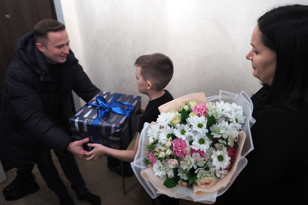 Сегодня виновника торжества и всю его семью поздравили от имени губернатора Воронежской области Александра Гусева и мэра города Вадима Кстенина. Егору вручили подарок, а его маме - букет цветов.