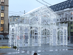 Напомним, что в рамках утвержденной концепции фирмой-подрядчиком будут установлены более 400 различных конструкций, составляющих новогоднее оформление площади – от многотонных бетонных тумб-подставок до огромной 3,5 метровой императорской кареты, запряженной четырьмя лошадьми. Кстати, объект уже находится на площади. Сейчас специалисты заканчивают работы по монтажу его подсветки. Интересно, что в 1724 году состоялось венчание на трон супруги Петра I. Именно для этого торжества царем и была заказана большая коронационная карета. Она была выполнена из дерева, украшена резьбой и росписью. Работу выполняли французы – мануфактура Гобеленов. После этого появилась новая традиция, введённая Петром Великим - торжественные события, посвященные коронации всех представителей династии Романовых, проходили с участием этой кареты.