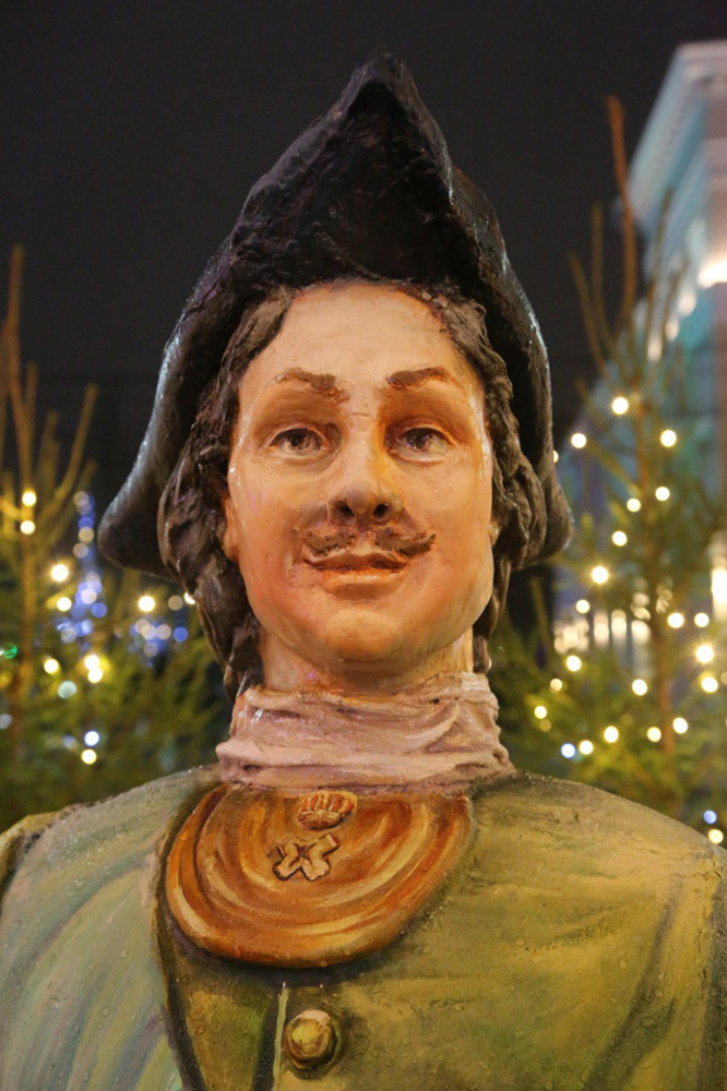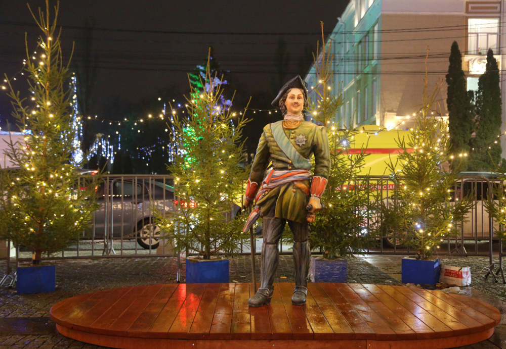 Праздничное оформление площади Ленина выдержано в стилистике петровских времен, поскольку 2022 год в стране объявлен годом 350-летия со дня рождения Петра Великого. Конструкции включают в себя новую общегородскую новогоднюю ель с вензелем императора и огромным светящимся шатром, две масштабные входные группы в виде Кикиных палат – памятника архитектуры петровского барокко, карусель для детей, качели разных видов, множество украшений и фотозон: карета, запряженная четверкой лошадей, ростральные колонны, двухметровая фигура молодого и веселого императора, светящиеся фигуры дам и кавалеров, интересные арочные конструкции.