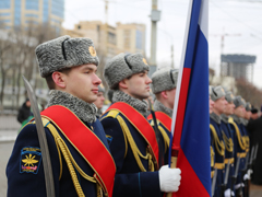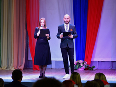Патриотическим аккордом торжественной части стали великолепные выступления руководителя военно-патриотического клуба «Юный десантник» Дмитрия Бараули и основателя сообщества «Работайте, Братья!!!» Артема Шипулина, а также Давида Ковернева (ДШИ №7, руководитель Наталья Адодина) и Анны Телепиной – руководителя юнармейского отряда «Патриоты» СОШ №101.