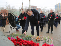 Вице-губернатор Сергей Соколов и заместитель председателя Правительства Воронежской области Виктор Логвинов возложили венки и цветы к подножью монумента. Напомним, он был открыт в августе 2014 года. Прообразом памятника стал наш земляк – начальник разведки мотострелкового полка капитан Юрий Лукьянчиков, погибший в Афганистане 23 июля 1985 года.Колонну от городской администрации возглавили заместители главы администрации – Юрий Тимофеев и Сергей Глазьев. Они почтили память погибших в военных конфликтах за пределами Отечества.