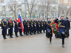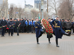 Мероприятие началось с минуты молчания и возложения цветов в память о тех, кто отдал свою жизнь в боях за Отечество.