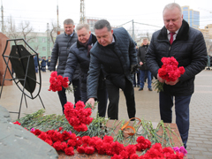 Вице-губернатор Сергей Соколов и заместитель председателя Правительства Воронежской области Виктор Логвинов возложили венки и цветы к подножью монумента. Напомним, он был открыт в августе 2014 года. Прообразом памятника стал наш земляк – начальник разведки мотострелкового полка капитан Юрий Лукьянчиков, погибший в Афганистане 23 июля 1985 года.Колонну от городской администрации возглавили заместители главы администрации – Юрий Тимофеев и Сергей Глазьев. Они почтили память погибших в военных конфликтах за пределами Отечества.