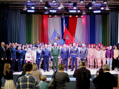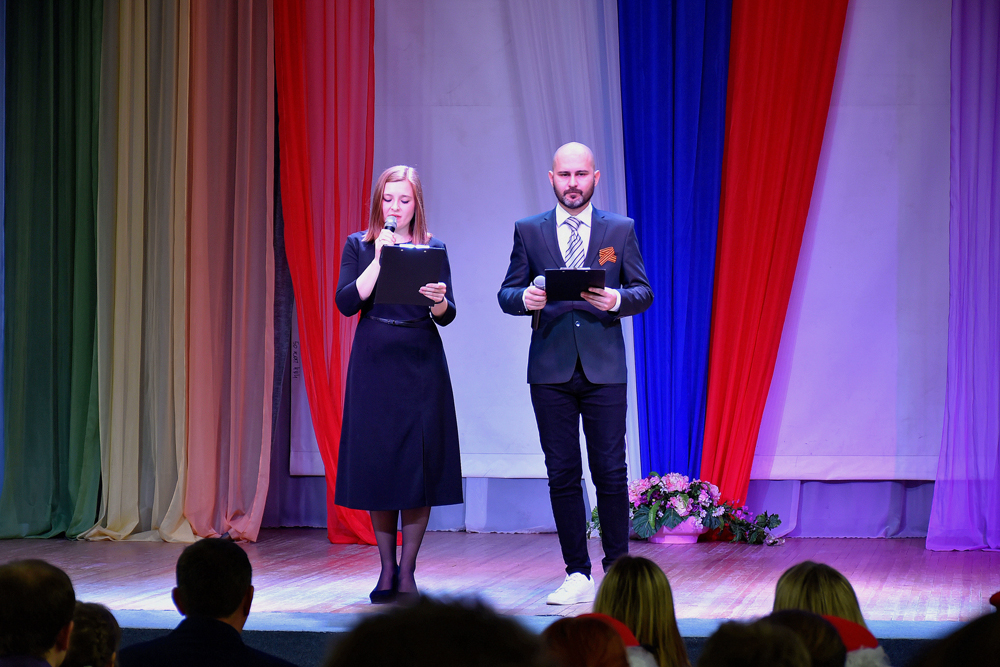 Патриотическим аккордом торжественной части стали великолепные выступления руководителя военно-патриотического клуба «Юный десантник» Дмитрия Бараули и основателя сообщества «Работайте, Братья!!!» Артема Шипулина, а также Давида Ковернева (ДШИ №7, руководитель Наталья Адодина) и Анны Телепиной – руководителя юнармейского отряда «Патриоты» СОШ №101.