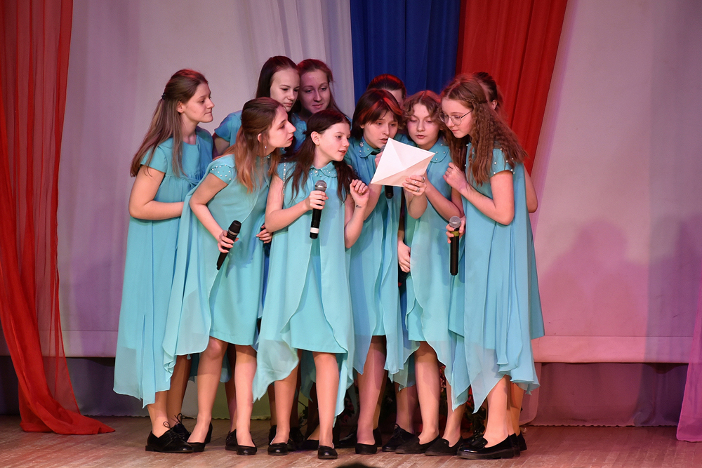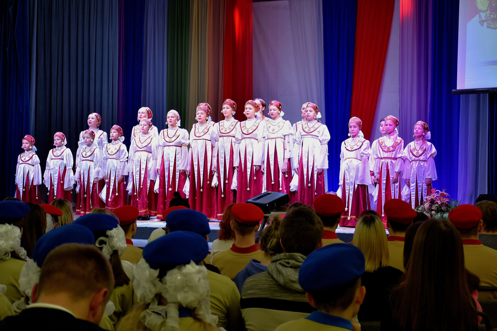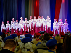 Звучали композиции на военно-патриотическую тематику в исполнении образцовых коллективов: ансамбль русской песни «Веретенце», хоровая студия «Акцент», ансамбль «Конфетти» и шоу-группа «Веселая карусель».